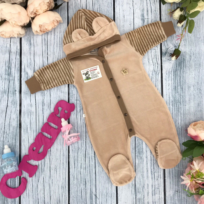 Теги: Купить велюровый комбинезон оптом от производителя. 225. Комбинезон с шапкой, 80% хлопок велюр, 20% ПЭ 56,62,68,74 цена,отзывы официальный сайт "Стеша Брянск"