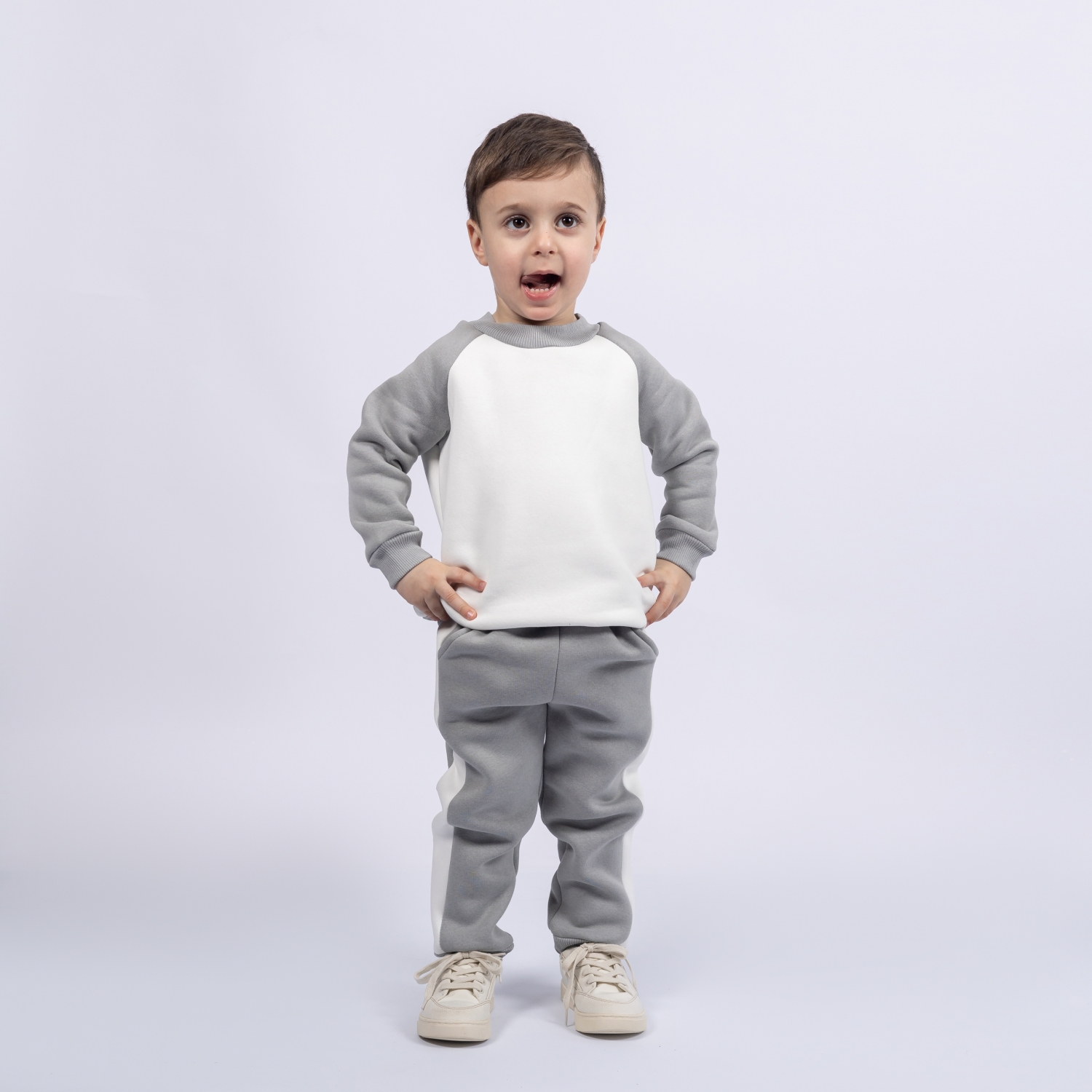 314-СЕР Свитшот + Штаны, серый, хлопок 65%, 35% ПЭ, 3-х нитка (начес) 80,86,92,98,104