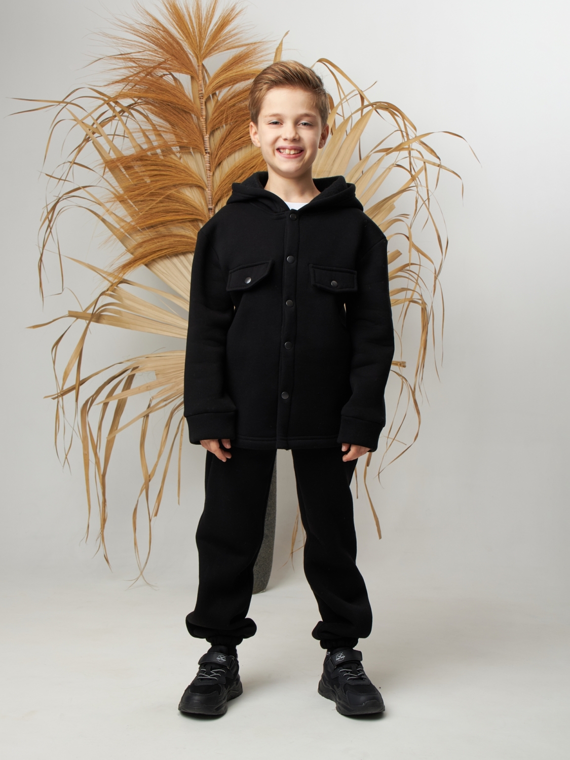 333. Костюм детский (Брюки+Толстовка) на кнопках, черный, хлопок 65%, 35% ПЭ, 3-х нитка с начесом 98,104,110,116