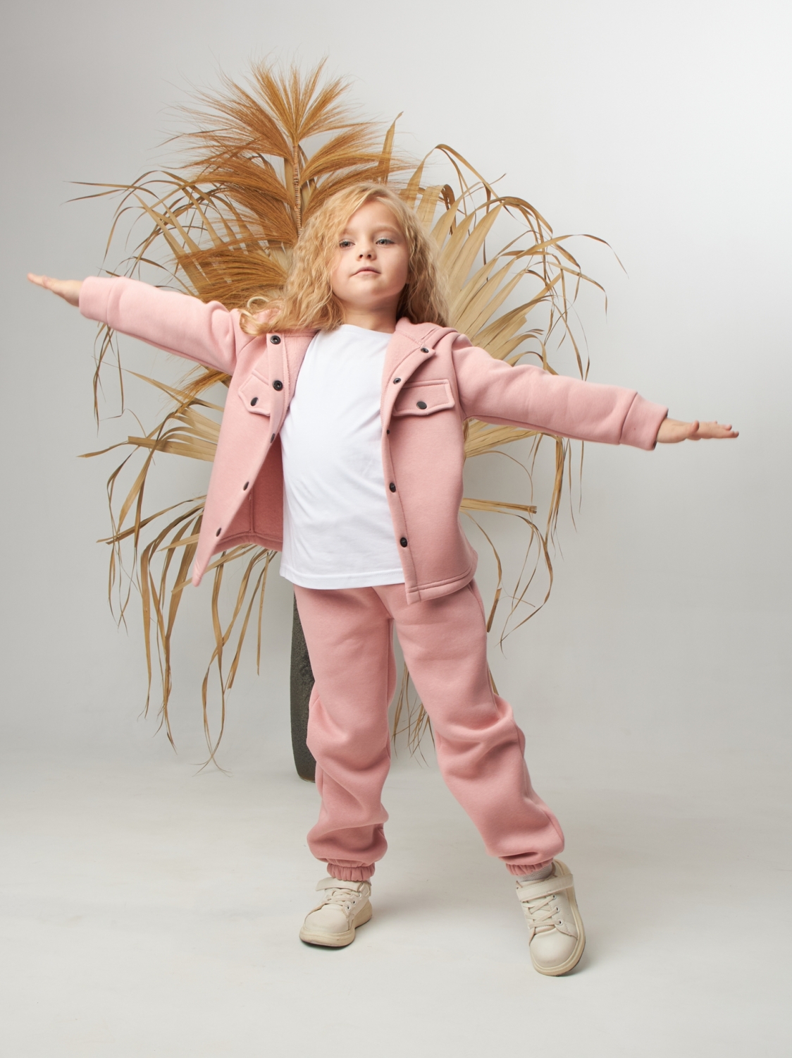 333. Костюм детский (Брюки+Толстовка) на кнопках, пудра, хлопок 65%, 35% ПЭ, 3-х нитка с начесом 98,104,110,116